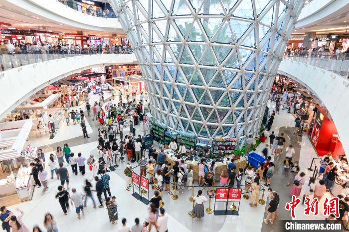 資料圖:眾多顧客在中免集團(tuán)三亞國際免稅城購物?!●樤骑w 攝