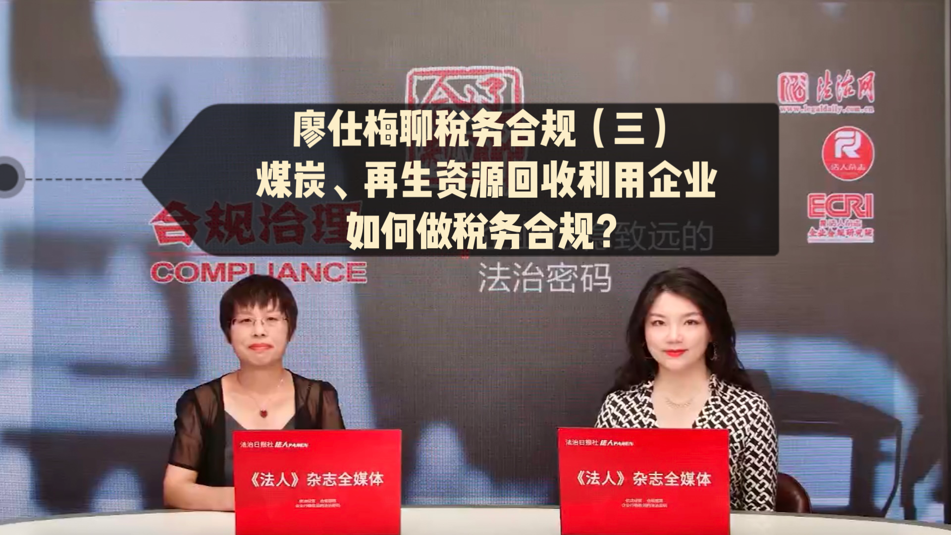 廖仕梅聊稅務(wù)合規(guī)(三)——煤炭、再生資源回收利用企業(yè)如何做稅務(wù)合規(guī)?>>詳情