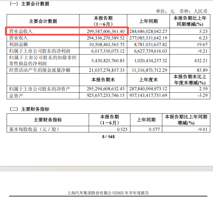 2025年上半年,比亞迪的汽車業(yè)務收入為3025.06億元,同比增長32.49%;上汽集團的營業(yè)總收入為2995.88億元,同比增長5.23%。
