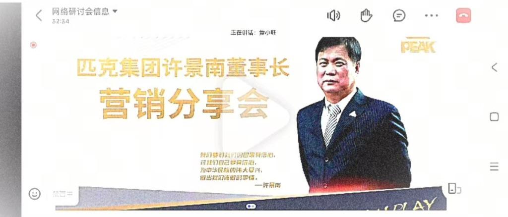多位員工介紹,9月17日上午的分享會,對外通知為關(guān)于三觀培訓(xùn)和加強(qiáng)內(nèi)控管理。主講人為董事長許景南,參會人員顯示為公司各單位主管級及以上人員、生產(chǎn)公司車間主任級及以上人員必須現(xiàn)場參加,也歡迎其他員工在合理安排工作下積極參與。談及管理分享會,多位員工表示,內(nèi)部稱之為“三觀培訓(xùn)會”,匹克通常一周到兩周開一次,由董事長一個人主講,一般要求管理人員參加,在總部的現(xiàn)場參加,外地的線上參會,開會時長基本為半天。